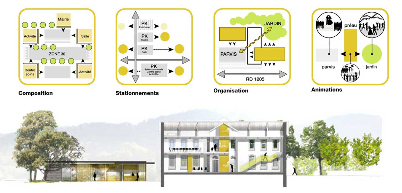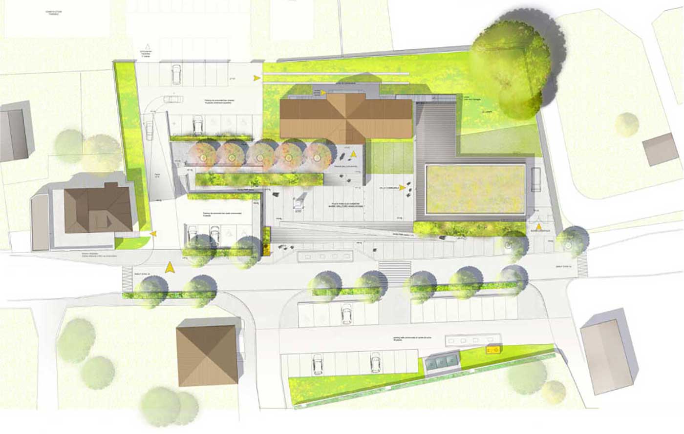 programme : aménagement des espaces publics (parvis, espaces de stationnements, route départementale)