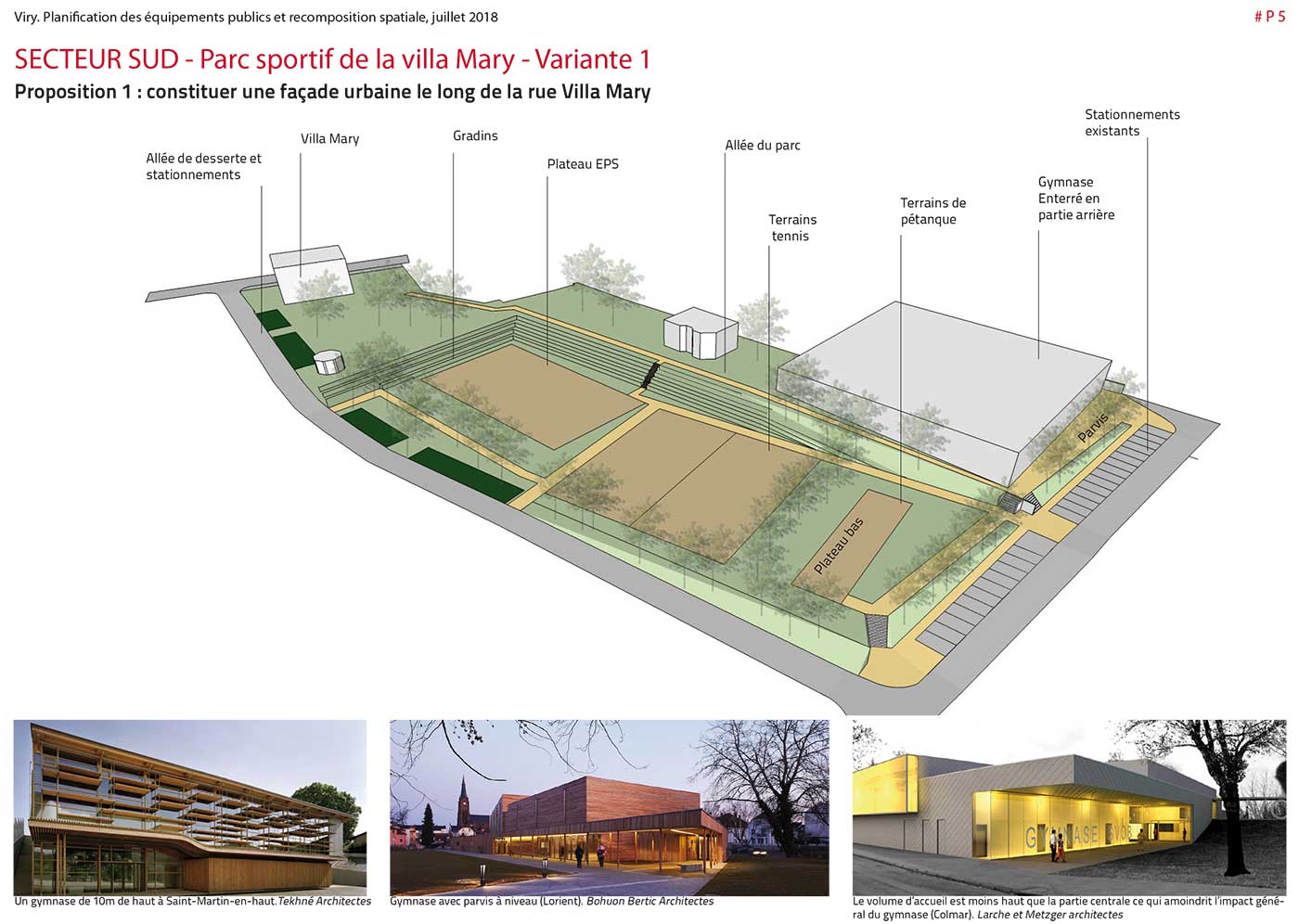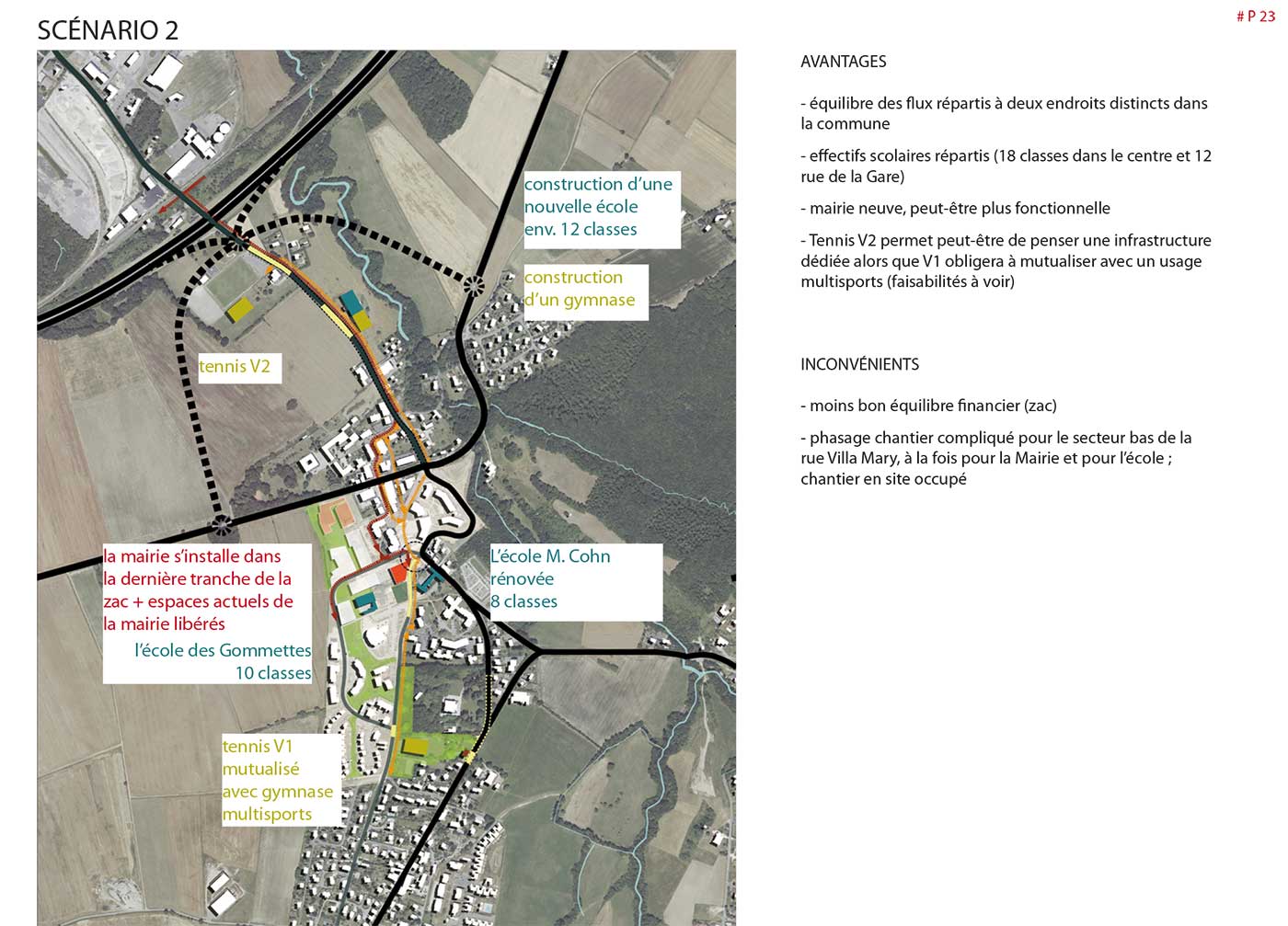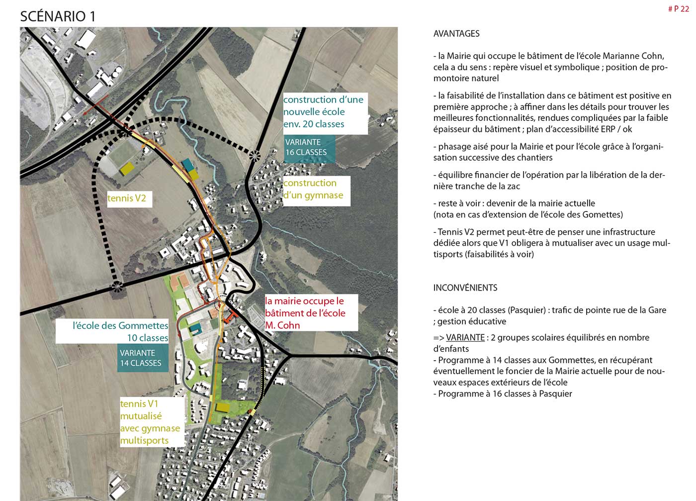 Étude de planification urbanistique, architecturale et paysagères de l’évolution des  équipements publics et de la réorganisation spatiale,  en vue d’accompagner la croissance démographique. Adaptation des bâtiments, réaménagement secteur des équipements sportifs,  proposition de scénarii d’aménagement & préconisations au PLU.