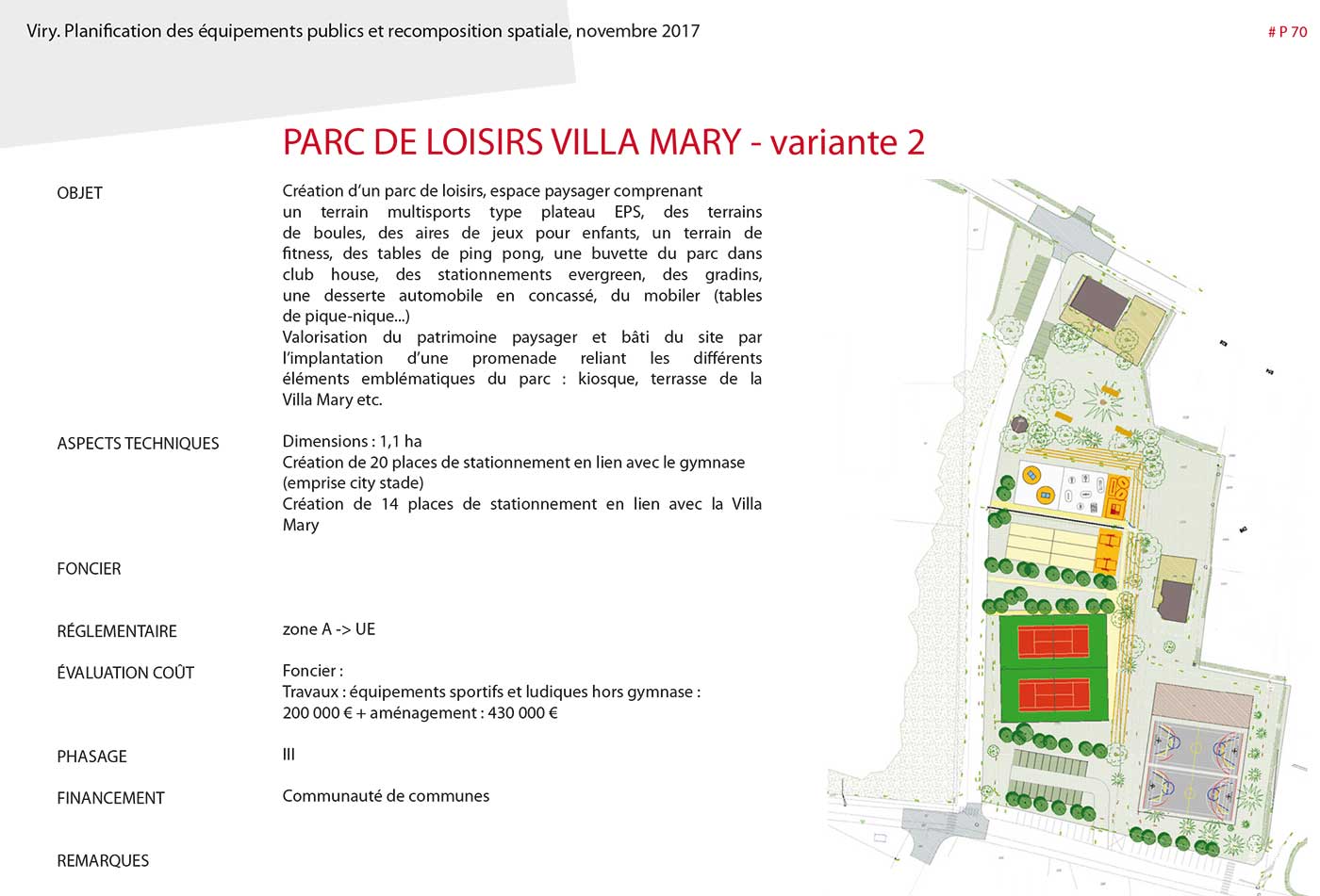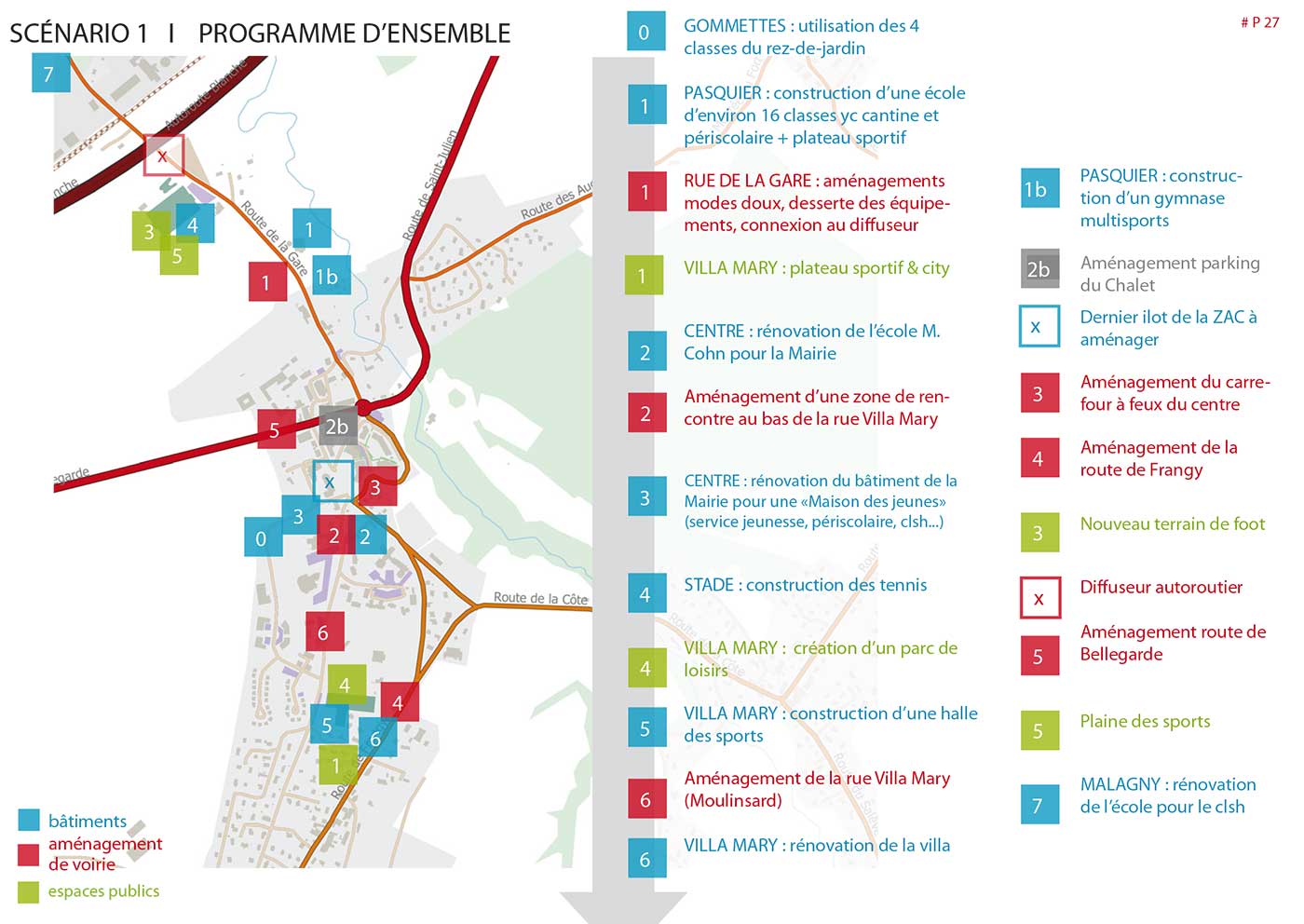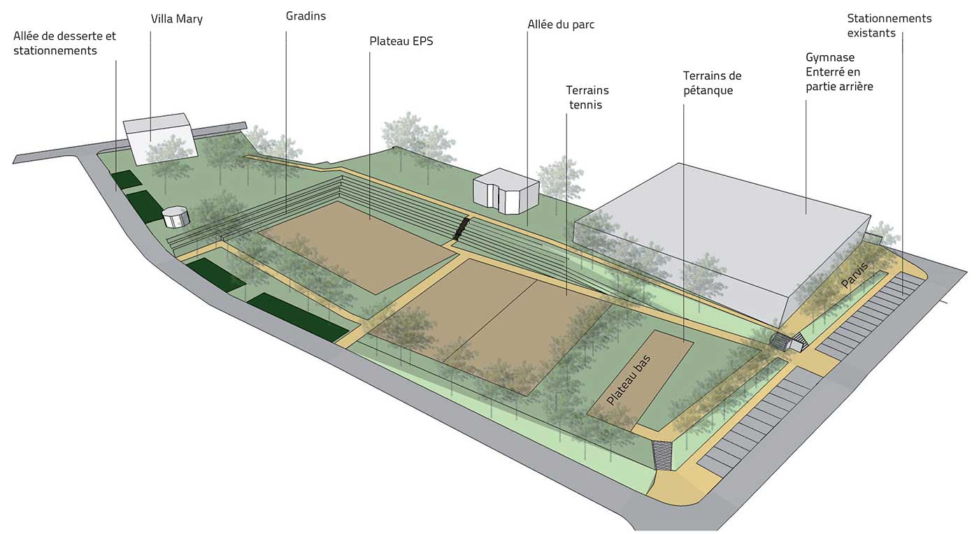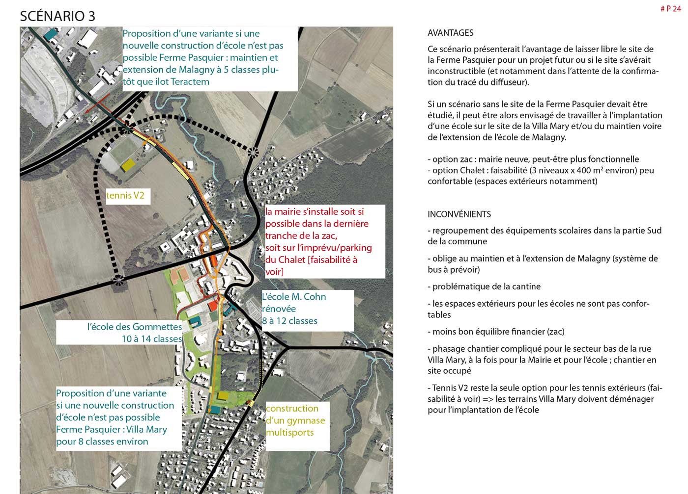 Étude de planification urbanistique, architecturale et paysagères de l’évolution des  équipements publics et de la réorganisation spatiale,  en vue d’accompagner la croissance démographique. Adaptation des bâtiments, réaménagement secteur des équipements sportifs,  proposition de scénarii d’aménagement & préconisations au PLU.