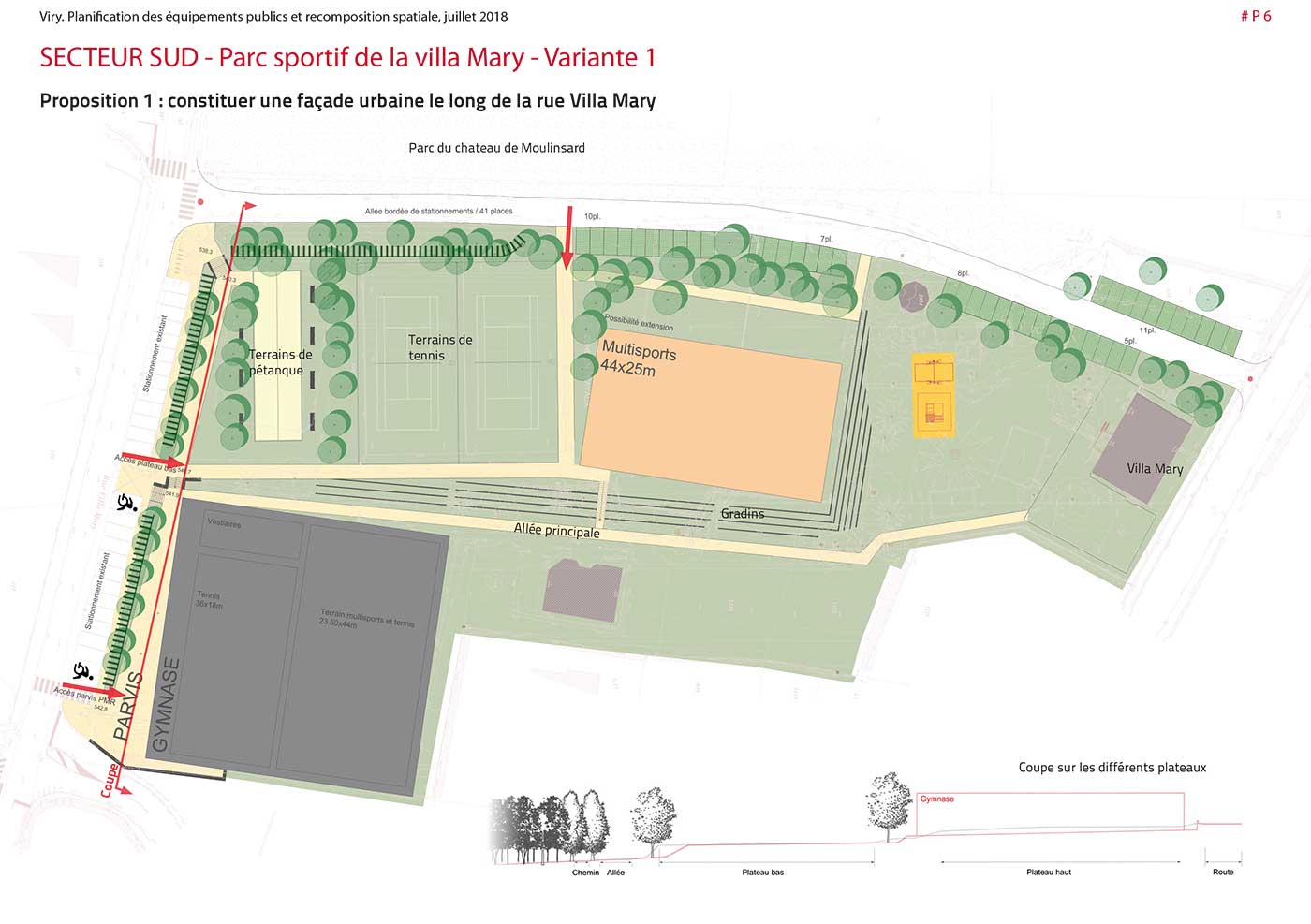 – en termes de maillage nord/sud et est/ouest (espace public, modes doux, trame végétale) permettant d’intégrer et de mettre en relation ces trois composantes