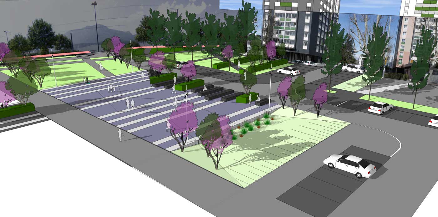 L’objectif premier de ce projet est la rénovation du quartier en lui donnant une nouvelle dynamique, que ce soit par la création de nouveaux bâtiments (pôle jeunesse / centre social), ou par la réhabilitation des espaces extérieurs. Une place centrale, permettant d’accueillir des événements ponctuels, des aires de jeux : une aire de jeux pour les petits située à côté du pôle jeunesse existant, une aire de jeux pour les plus grands avec ses buttes qui deviennent terrain d’aventure. Des agrès sportifs, un terrain d’aire de jeux de ballons viennent également agrémenter le quartier. Un espace rencontre permet aux familles de se retrouver autour d’une grande table pique-nique et du terrain de boule.